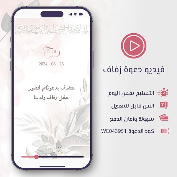 - ستتلقى الدعوة على هيئة فيديو جاهز للتنزيل والاستخدام الفوري.